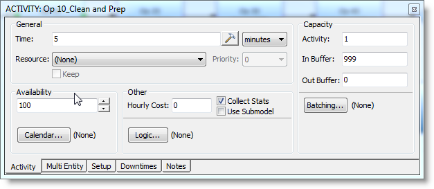 Right-click on a shape and the Activity dialog displays.