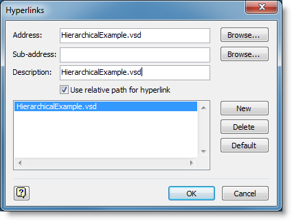 Please note: You can link other files to activities as hyperlinks (plain graphics can be linked to separate Visio documents with no effect on the model).