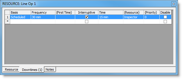 Downtimes are used to model interruptions of resources in use by entities. Downtimes may represent scheduled interruptions such as