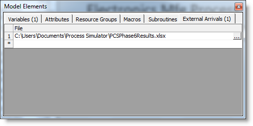 An External Arrivals file is a spreadsheet (.xsl or .xlsx format only) file containing arrival information normally specified in a Periodic arrival connection. One or more arrival files may be referenced in the External Files table. External Arrival files are automatically read in at the start of the simulation following the scheduling of all other arrivals defined in arrival connections in the model. The column entries must be as follows: