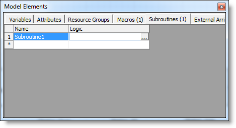 A subroutine is a user-defined model element that can be called to perform a block of logic.They are normally used when the same set of statements is repeated in multiple places, such as at multiple activities. In this case, calling the same subroutine from each activity simplifies the logic and provides a single source where the logic can be modified. Subroutines can be called from arrival, activity, and move logic.