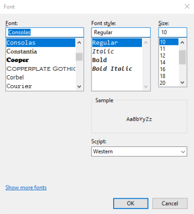 - When the Font dialog box appears, select the desired font by scrolling through the Font list.