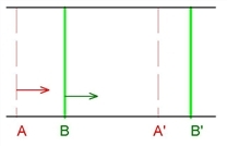 Bridge B starts moving first, from [B] to [B'], then bridge A wants to move from [A] to [A']. Bridge B claims the zone [B~B'] in the Æ direction. Since bridge A wants to move in the same direction and their destinations do conflict, priorities will be considered. If the move priority of A is not greater3In this special case, bridge A’s claim priority competes with the task move priority of bridge B. than the move priority of B, bridge A starts moving towards [A'' = B' - bridge separation] only. Otherwise, A will push B away, and B will not respond to the request while passing over [B']. In both cases, A may queue up behind B.