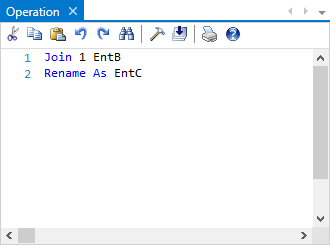 Each entity processes the operation statements defined for it at a particular location, independent of other operations performed on other entities at the same location. The following example presents the operation logic for an entity joining an entity, EntB, and renaming the entity as EntC.