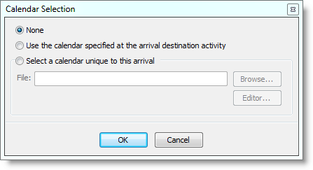 - Select a calendar unique to this arrival By selecting this option, browse for either a previously saved Calendar file or launch the Calendar editor and create a new Calendar file, specific to the arrival type selected.
