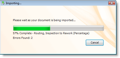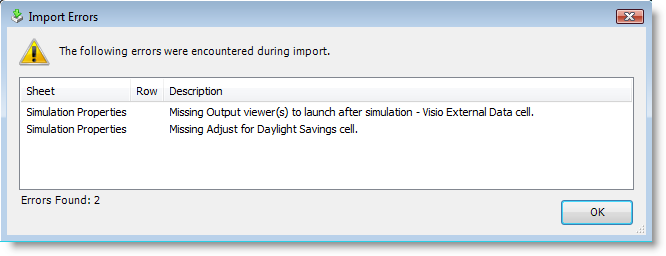 Please Note If there was a problem with importing the file, you will receive an “Import Errors” window. This window lists all the errors encountered during the import process. Your Process Simulator model will not be modified with the imported changes until all the import errors are resolved.