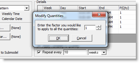 For example, if your quantity was 10 for row one, 2 for row two and 5 for row three and you applied a factor of 2 in the Modify Quantities dialog, the quantity of arrivals would be 20, 4, and 10 respectively.