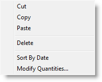 In addition, two other options are possible in the right-click menu for Pattern arrivals, Sort By Date and Modify Quantities.